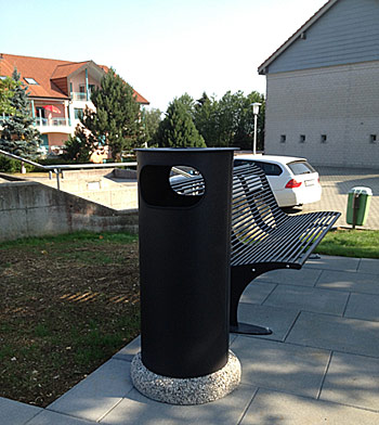 seitlich mit 2 Einwurföffnungen für Abfall,