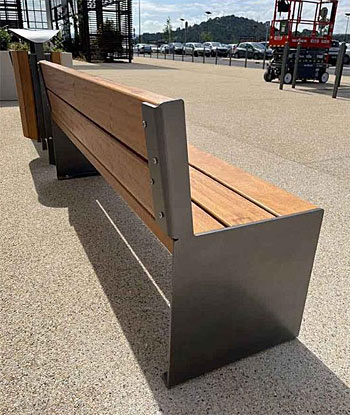 eine moderne und sehr stabile Park- und Hockerbank,