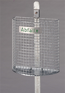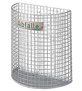 Halbkreisform mit einem Inhalt von 27 Litern - mit Schild „Abfälle“