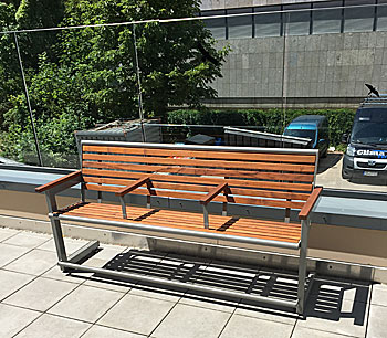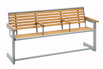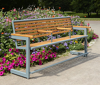 seniorengerechte Parkbank mit Armlehnen und Fußablage,