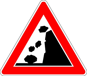 Verkehrszeichen VZ 101-15 "Steinschlag" Aufstellung rechts,