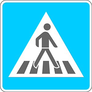 Verkehrszeichen VZ 350-10 "Fußgängerüberweg" Aufstellung links,