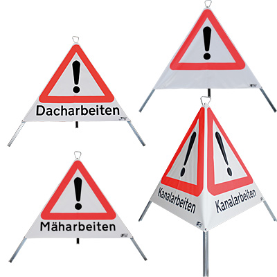 Gewebe (weiß) mit großem Warndreieck in rot,